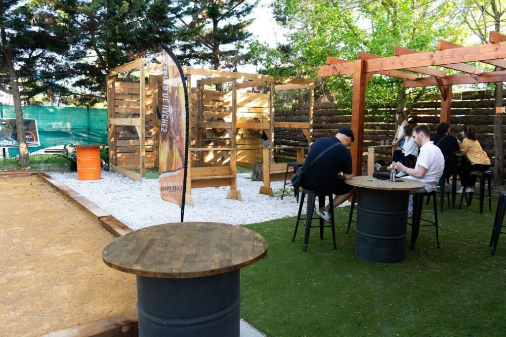 L’activité phare est le lancer de haches, où les participants apprennent à viser une cible en bois après une courte initiation. Très vite, l’activité se transforme en tournoi entre amis, ce qui crée une ambiance compétitive et conviviale.